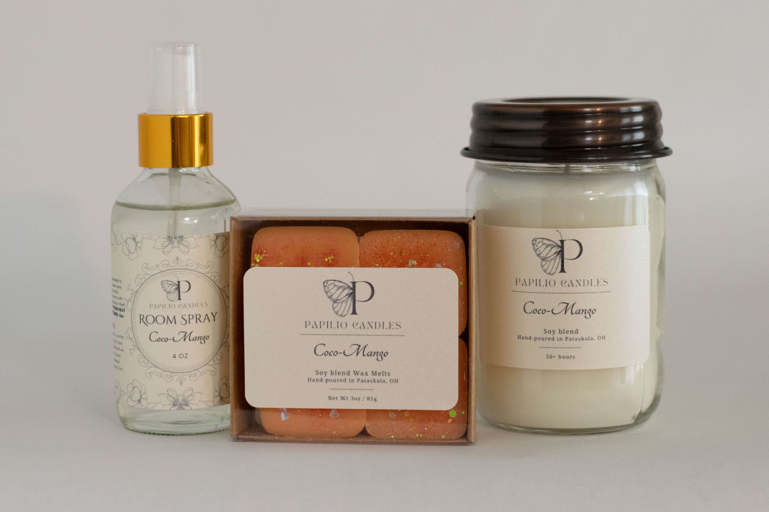 Tropical and juicy, Coco-Mango is sunshine in scent form. Bursting with notes of orange peel, pineapple, and peach, this fragrance melts into a heart of mango and sweet sugar, then envelops you in creamy coconut milk for a beachy finish. Light it, melt it, or spritz it; it is the perfect way to brighten any day with summer vibes. This fragrance evokes the sensation of sipping a fruity drink under swaying palm trees, with warm sand beneath your feet. The scent quickly takes you to an exciting place. You can feel joy and breathe in the fresh air. It not only energizes your mornings but also adds charm to your everyday surroundings.