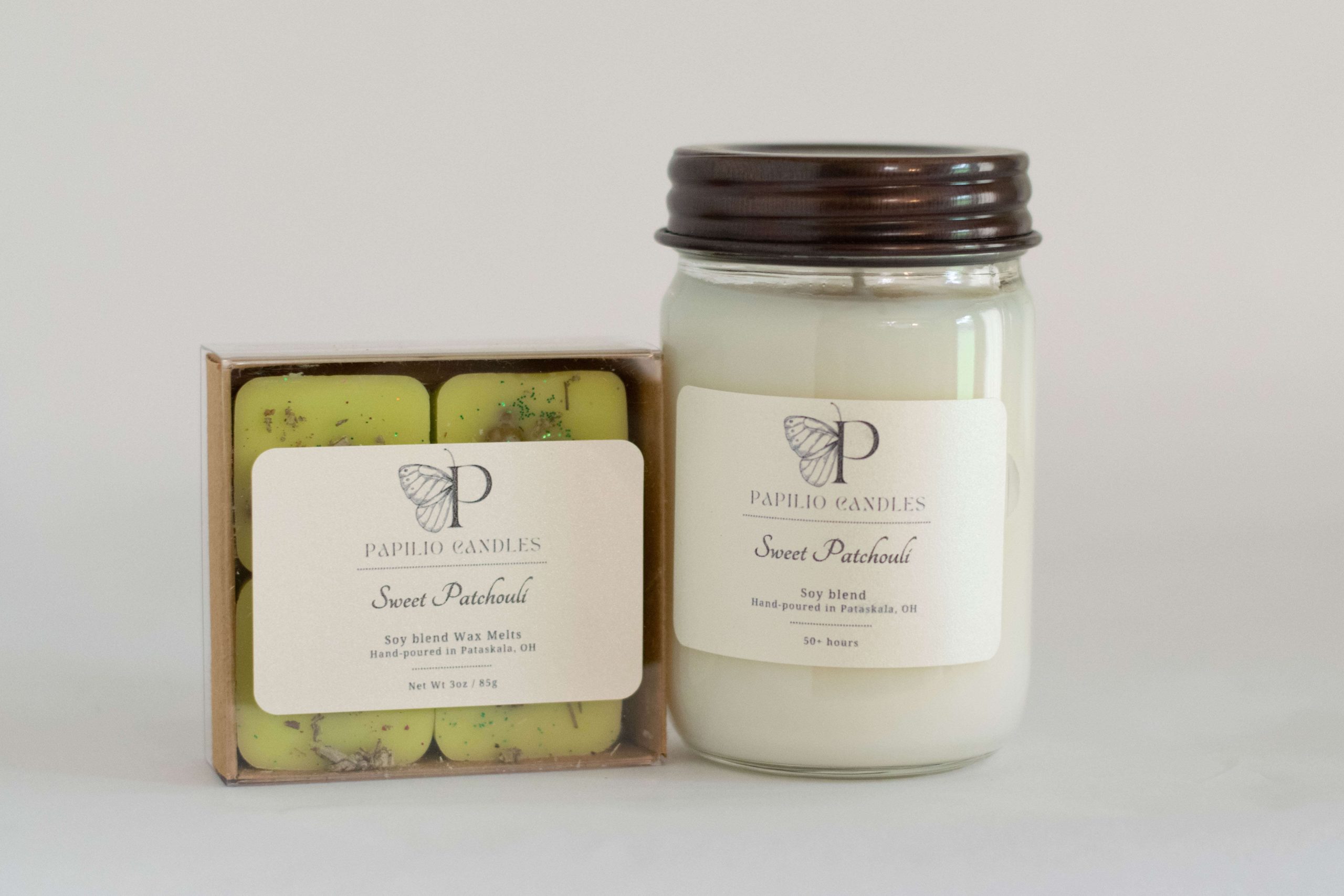 Sweet Patchouli is a scent that is earthy, masculine, and robust.  The heavy patchouli notes are combined with fresh green grass, calming lavender, and sweet, delicate licorice. The balsamic and menthol notes provide a clean, uplifting feeling that is balanced by a warm, amber bottom note for stability. This scent is ideal for offices, studies, or dens, as it creates a bold yet sophisticated atmosphere that is perfect for personal escape. Sweet Patchouli is the ideal scent for home fragrance enthusiasts who appreciate strong yet complex scents. This fragrance will fill your space with confidence, yet appreciates warmth and sophistication.  Strong yet refined, earthy yet uplifting, this fragrance is a perfect blend that demands attention.